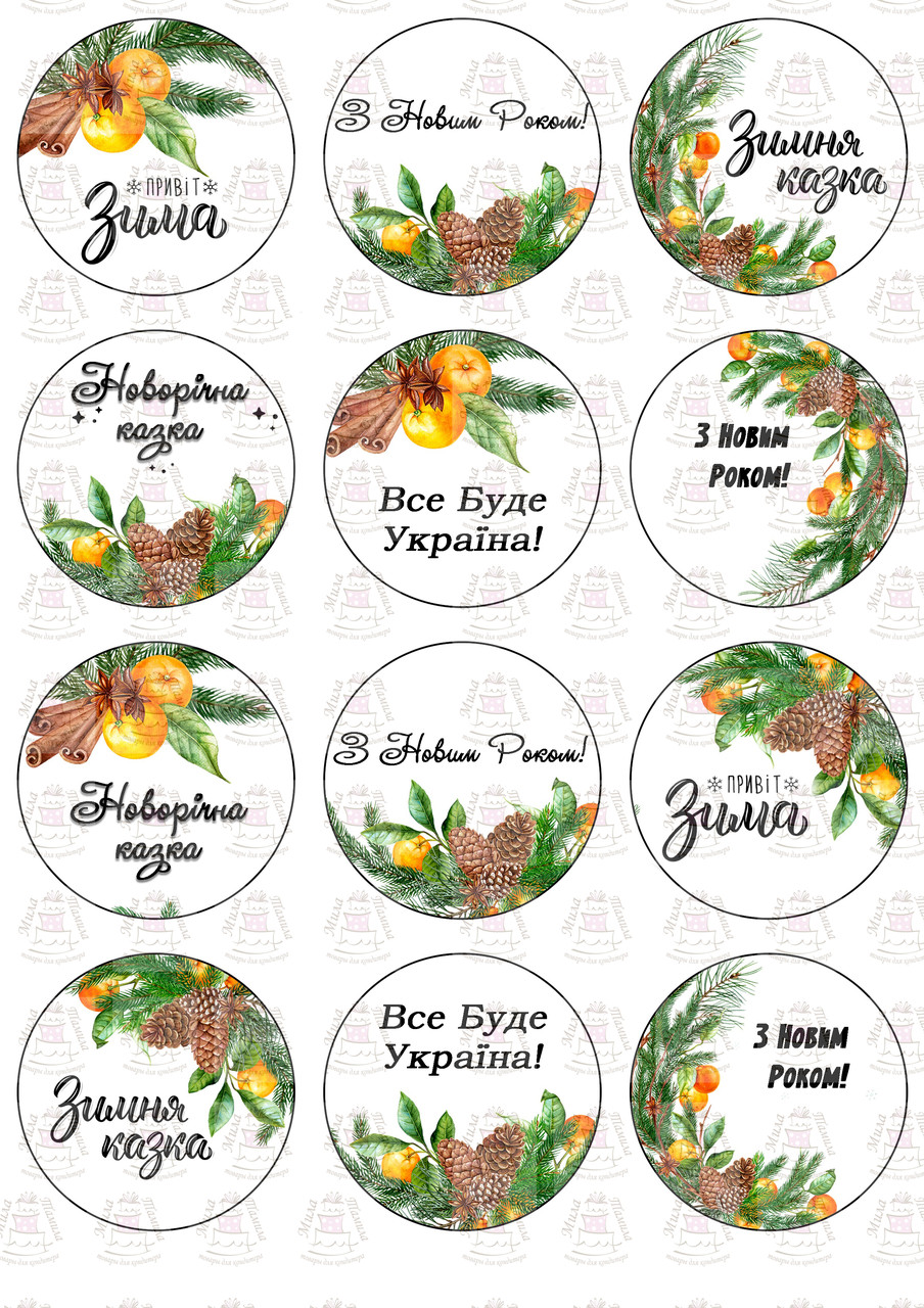 Вафельна картинка на торт З Новим Роком це відмінне рішення для створення святкового тематичного настрою. Вафельна картинка легко клеїться на поверхню торта і надає йому вигляду закінченої композиції.